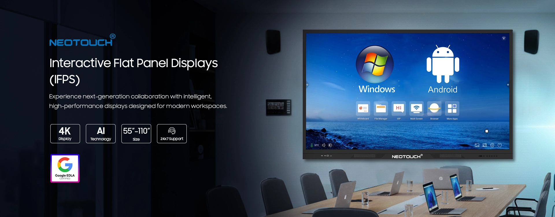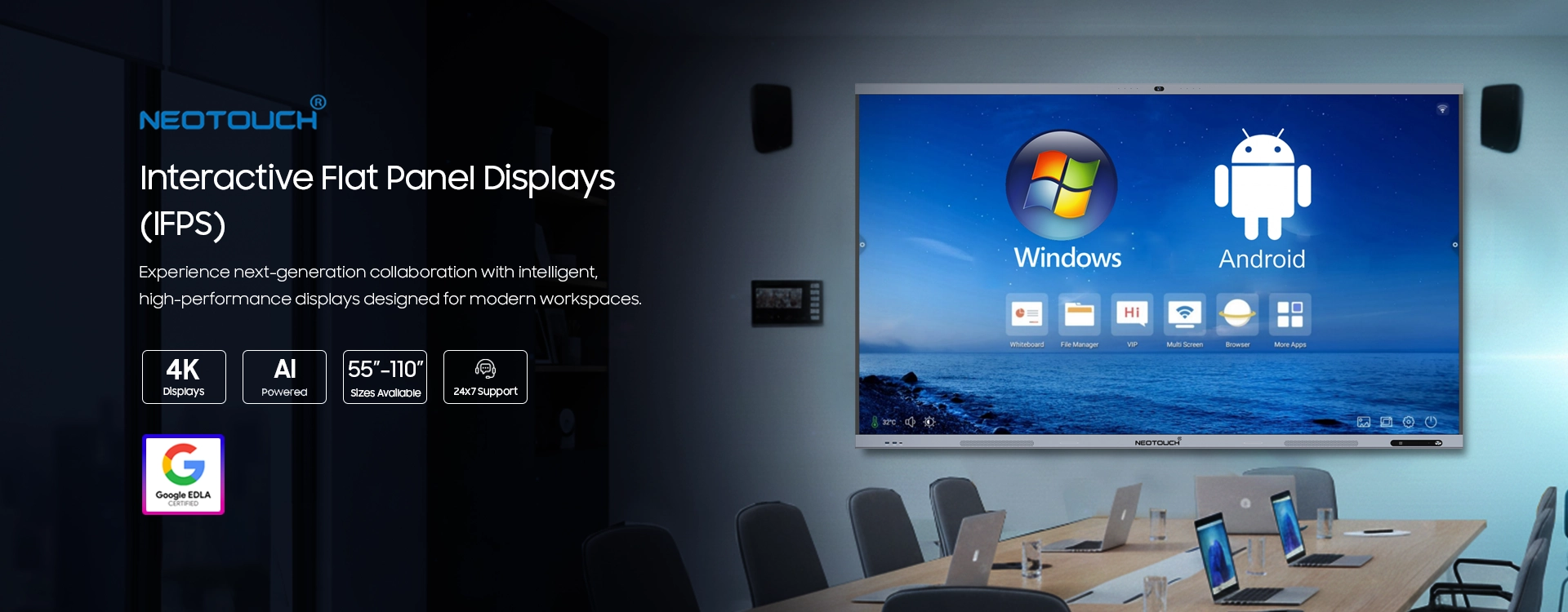 Neotouch is one of India’s leading brands in Interactive Flat Panel Displays (IFPD). Our interactive panels deliver exceptional audio-visual clarity and a smooth, responsive touch experience, redefining the way people teach, learn, and collaborate. With installations across thousands of classrooms, boardrooms, and industrial environments, Neotouch has been instrumental in transforming traditional spaces into smart, technology-driven ecosystems through advanced interactive panel solutions.